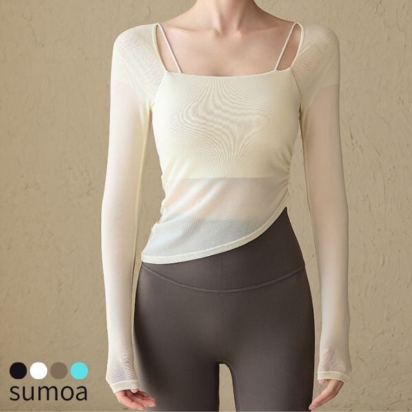 メッシュTシャツ カップ付き ブラトップ シアー カットソー 長袖 UVカット 紫外線カット 速乾 ヨガ ピラティス フィットネス ジム メッシュ 通気性 トレーニング ウェア ダンス スポーツ 普段着 カジュアル ホットヨガ 吸汗 ニット