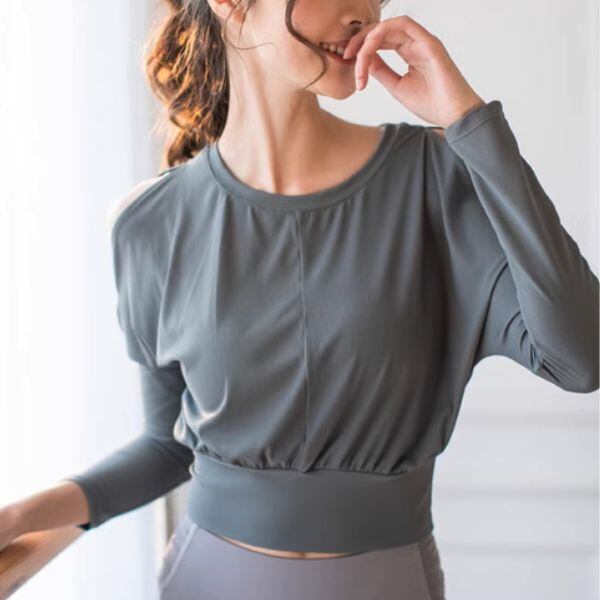Tシャツ 肩出し 肩開き ショルダー 長袖 カットソー UVカット 紫外線カット 速乾 ヨガ ピラティス フィットネス ジム メッシュ 通気性 トレーニング ウェア ダンス スポーツ 普段着 カジュアル ホットヨガ 吸汗 ニット