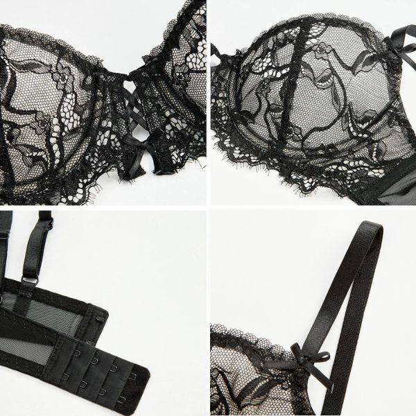 ノンパテッドブラ ショーツセット 総レース クロス シースルー 美胸 ビスチェ ノンパテッド 高級レース SEXY セクシー 透け ランジェリー ノーパッド ブラ ショーツ セット フラワー レース "